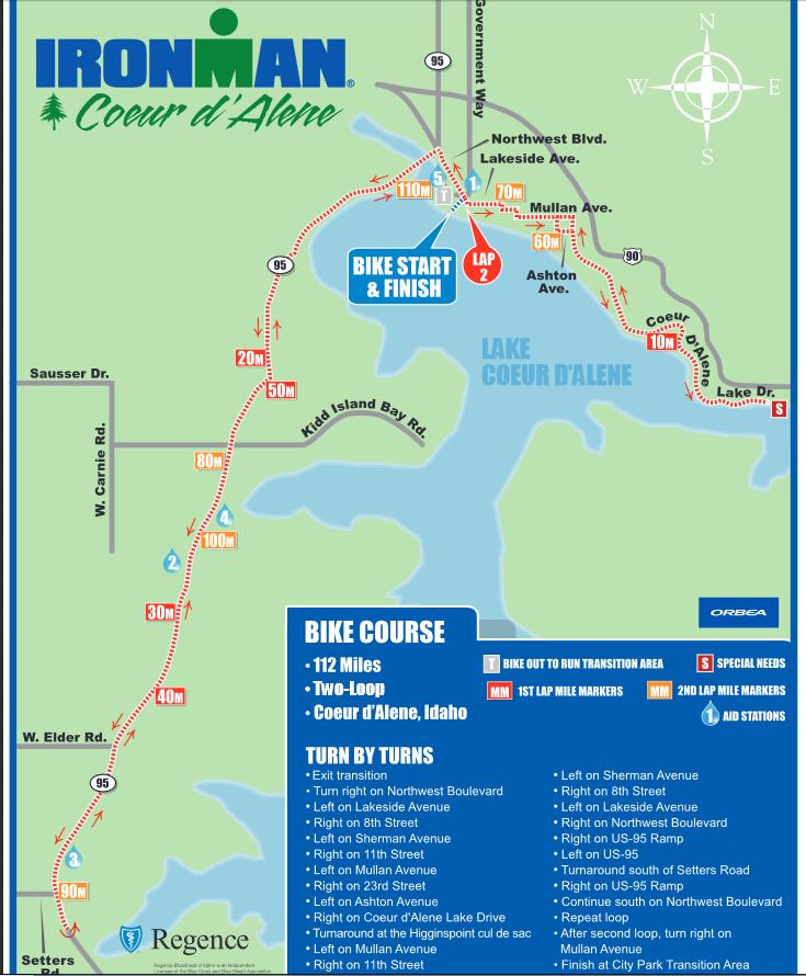 Run: The spectator support on the run course is the highlight of the race. Athletes will run parallel to the shore of Lake Coeur d’Alene for two loops, with one steep climb at the southern turnaround point.